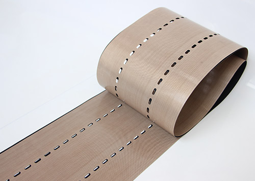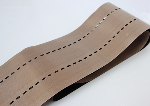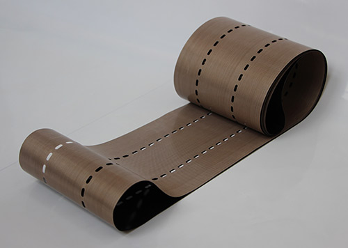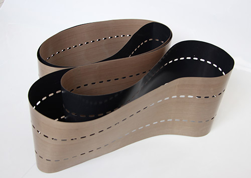 串焊機(jī)打孔特氟龍輸送帶采用高強(qiáng)度玻璃纖維紗或凱芙拉(芳綸)經(jīng)圓織設(shè)備編織筒狀織物,采用工藝技術(shù)涂覆特氟龍樹脂(PTFE)制成的。它克服以往輸送帶接口連接處易斷裂的現(xiàn)象。連接處周長不等而造成走行穩(wěn)定性差、跑偏現(xiàn)象。無縫皮帶運(yùn)轉(zhuǎn)壽命比任何接法的特氟龍輸送帶壽命都要長3倍以上。