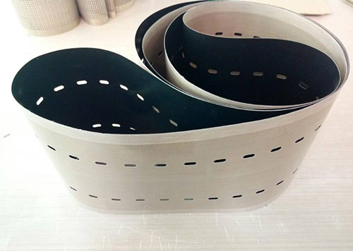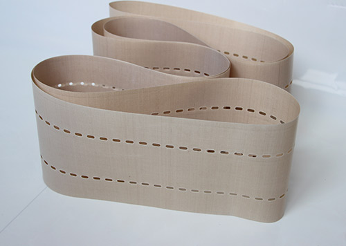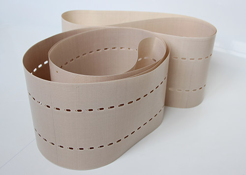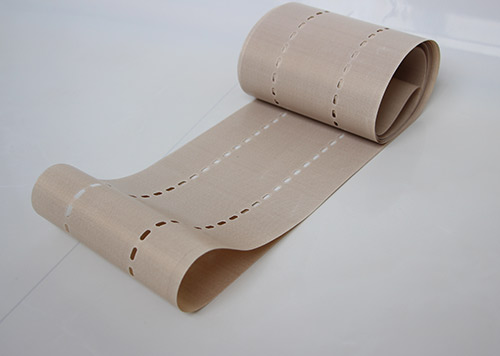 串焊機(jī)打孔特氟龍輸送帶采用高強(qiáng)度玻璃纖維紗或凱芙拉(芳綸)經(jīng)圓織設(shè)備編織筒狀織物,采用工藝技術(shù)涂覆特氟龍樹脂(PTFE)制成的。它克服以往輸送帶接口連接處易斷裂的現(xiàn)象。連接處周長(zhǎng)不等而造成走行穩(wěn)定性差、跑偏現(xiàn)象。無縫皮帶運(yùn)轉(zhuǎn)壽命比任何接法的特氟龍輸送帶壽命都要長(zhǎng)3倍以上。