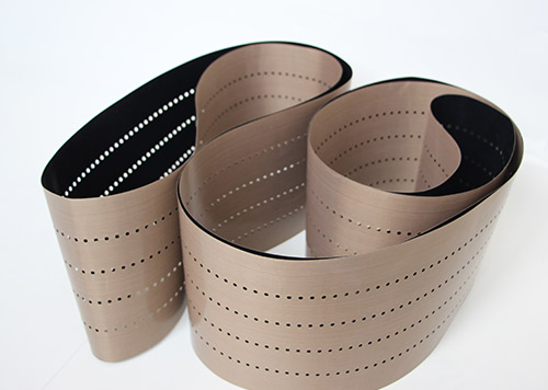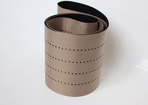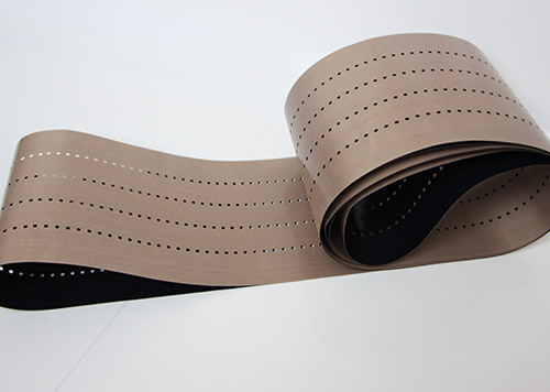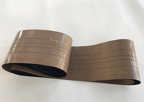 串焊機(jī)打孔特氟龍輸送帶采用高強(qiáng)度玻璃纖維紗或凱芙拉(芳綸)經(jīng)圓織設(shè)備編織筒狀織物,采用工藝技術(shù)涂覆特氟龍樹脂(PTFE)制成的。它克服以往輸送帶接口連接處易斷裂的現(xiàn)象。連接處周長不等而造成走行穩(wěn)定性差、跑偏現(xiàn)象。無縫皮帶運(yùn)轉(zhuǎn)壽命比任何接法的特氟龍輸送帶壽命都要長3倍以上。