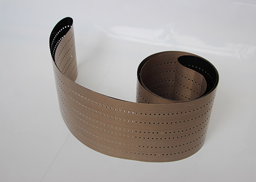 串焊機打孔特氟龍輸送帶采用高強度玻璃纖維紗或凱芙拉(芳綸)經(jīng)圓織設(shè)備編織筒狀織物,采用工藝技術(shù)涂覆特氟龍樹脂(PTFE)制成的。它克服以往輸送帶接口連接處易斷裂的現(xiàn)象。連接處周長不等而造成走行穩(wěn)定性差、跑偏現(xiàn)象。無縫皮帶運轉(zhuǎn)壽命比任何接法的特氟龍輸送帶壽命都要長3倍以上。