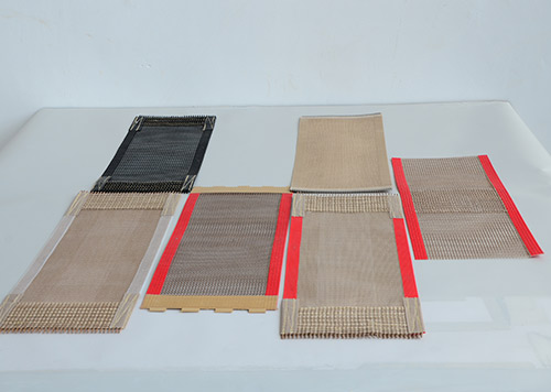 2.墻式接頭法:在網(wǎng)帶的兩頭分別用凱夫拉高溫布做圓柱狀的布條子,客戶也是直接用我們配好的鋼絲直接穿進(jìn)凱夫拉高溫布的小孔里面就行了。這種接頭方式的好處就是接頭處很耐磨,但是抗拉強(qiáng)度并不是很高。